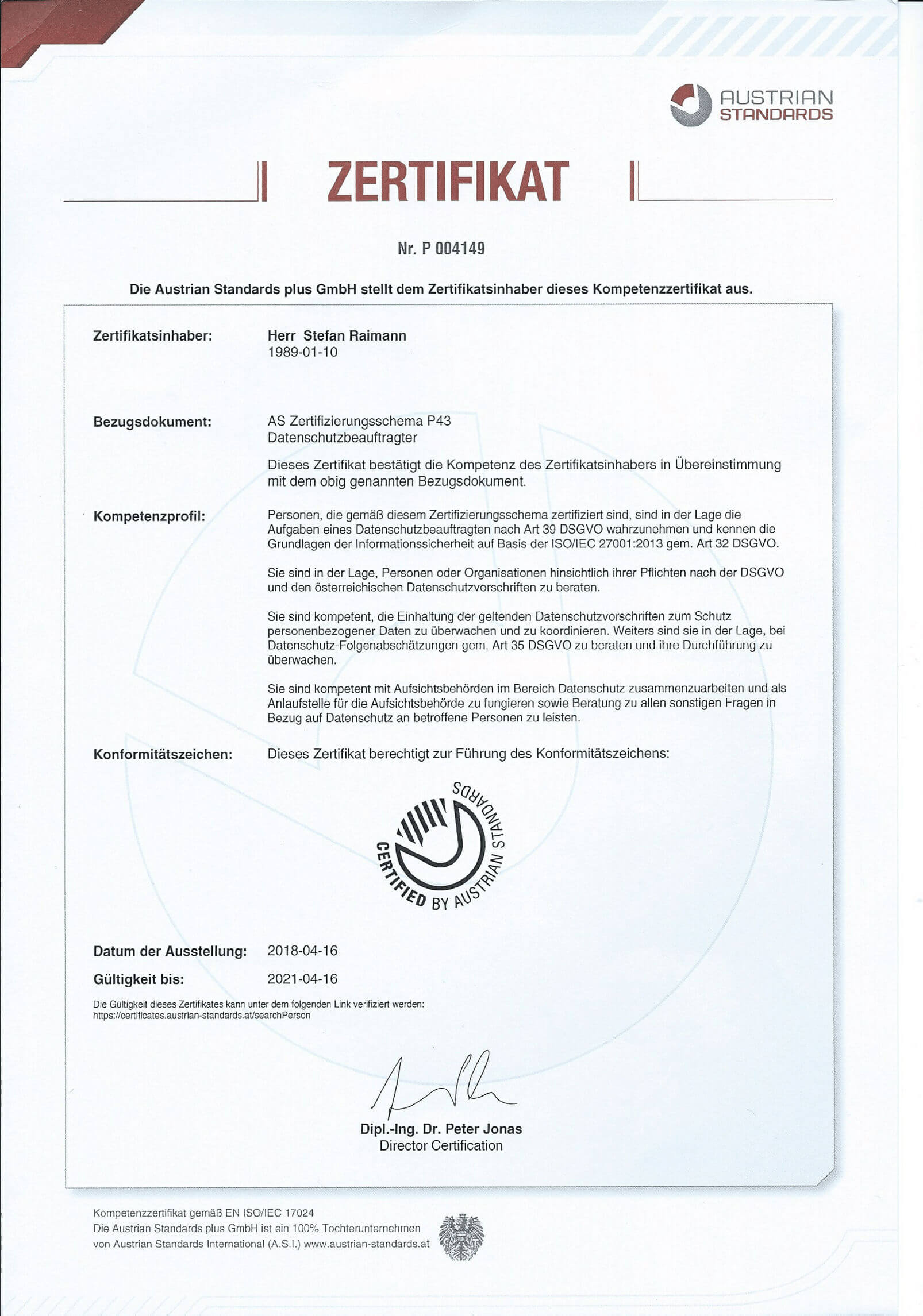 We work according to the highest data protection and security standards. To ensure that your company and your customers' data is protected in the best possible way, we have had our leading employees certified as data protection officers by Austrian Standards.
